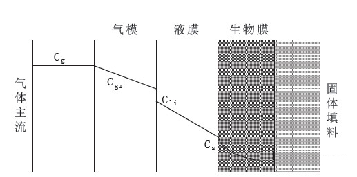 ②在濃度差推動下揮發(fā)性有機物從液膜內擴散到生物膜中;